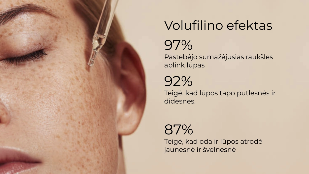 Volufilinas skatina natūralų riebalinių ląstelių dauginimąsi lūpų srityje, todėl lūpos atrodo pilnesnės, stangresnės ir išraiškingesnės. Jos įgauna švelnią apimtį ir natūralų putlumą be injekcijų. Kadangi padidėja riebalinių ląstelių kiekis šis efektas išlieka labai ilgai.